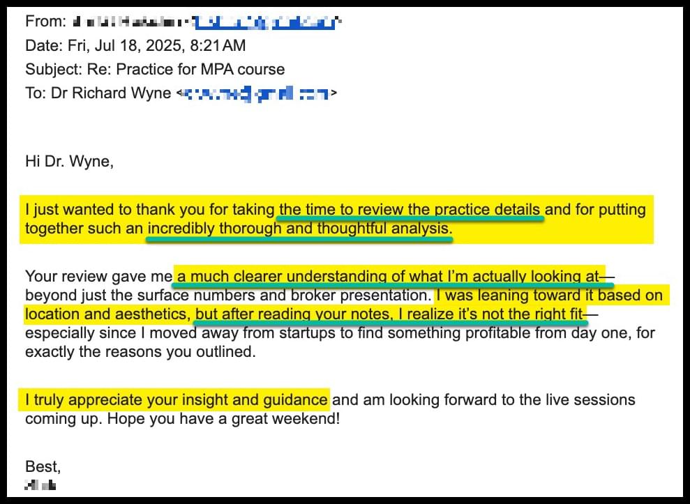 So, if you are going to invest the time and energy into buying a practice, it would benefit you to invest in the resources to learn from Richie... someone who has made more than $1,000,000 in a year.