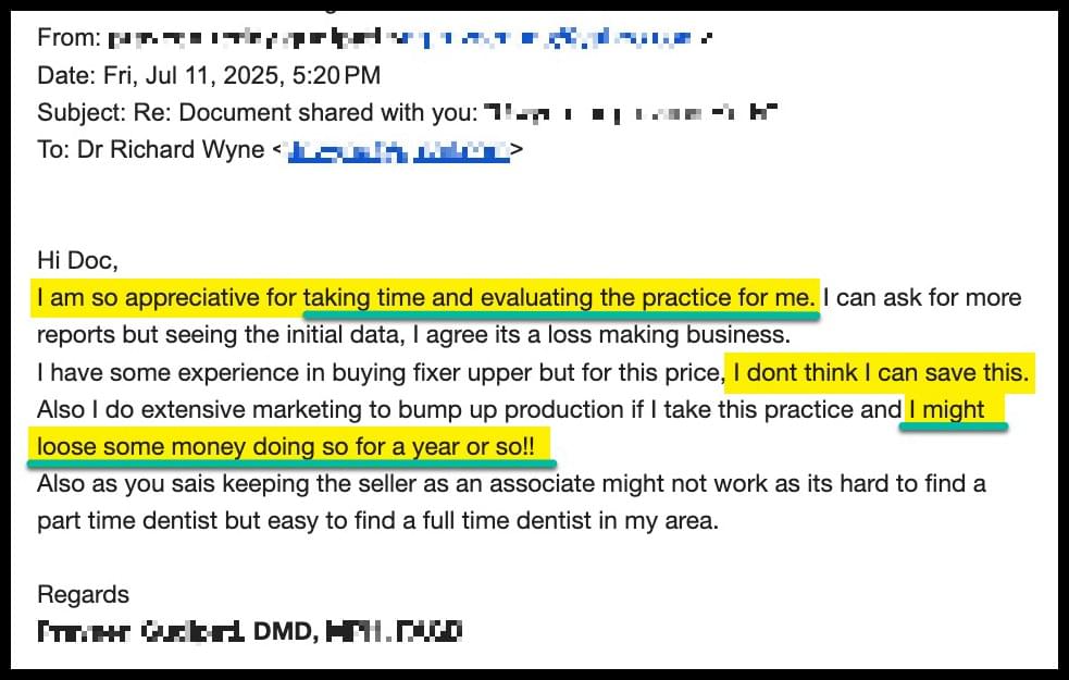 Richie says, based on his experience talking to practice owners who buy the right practice, that many of them are
